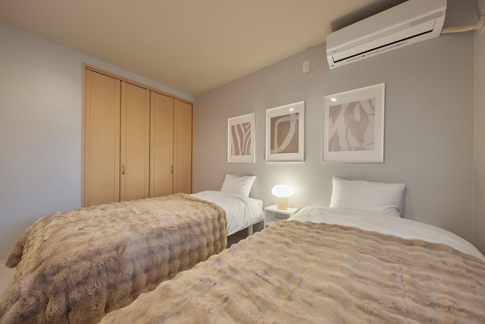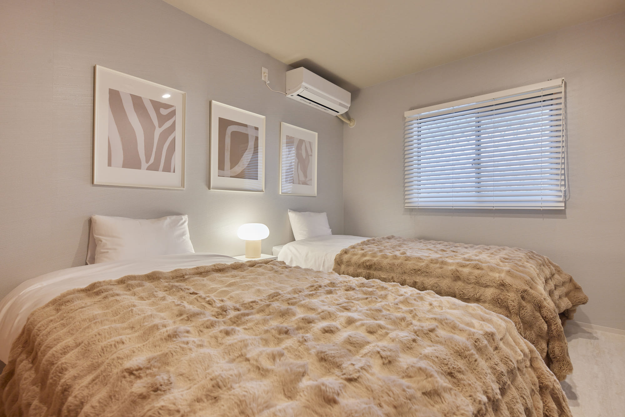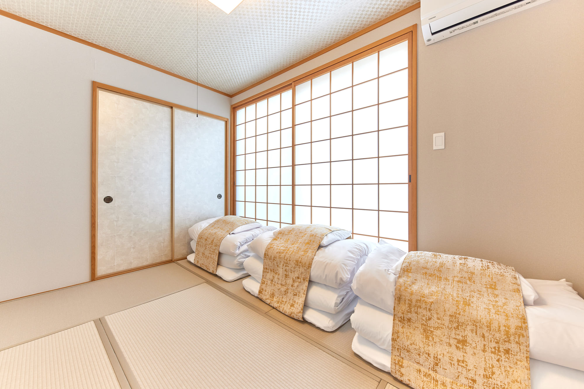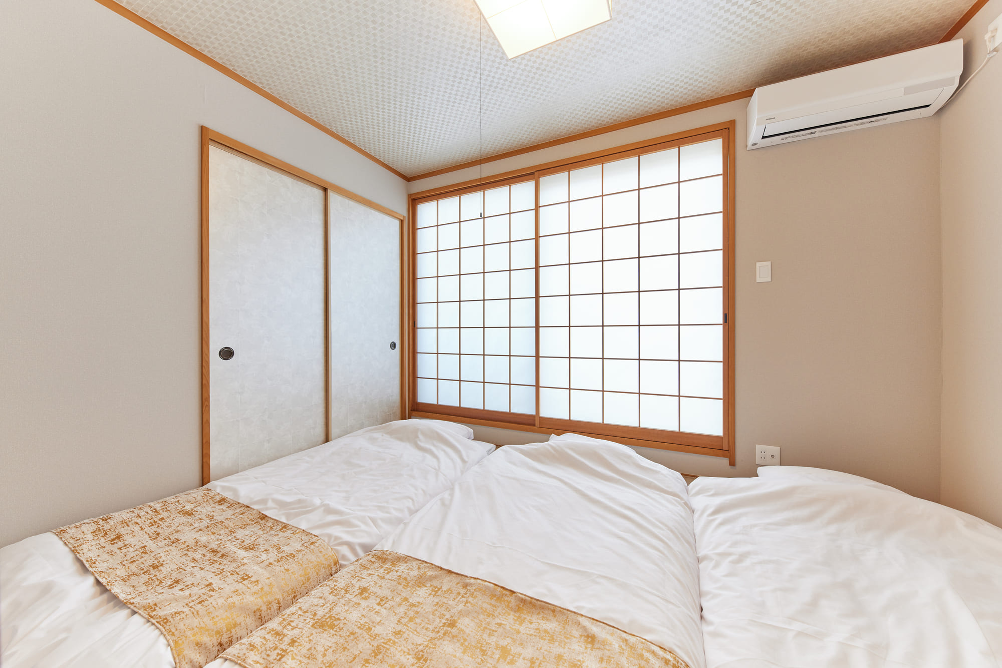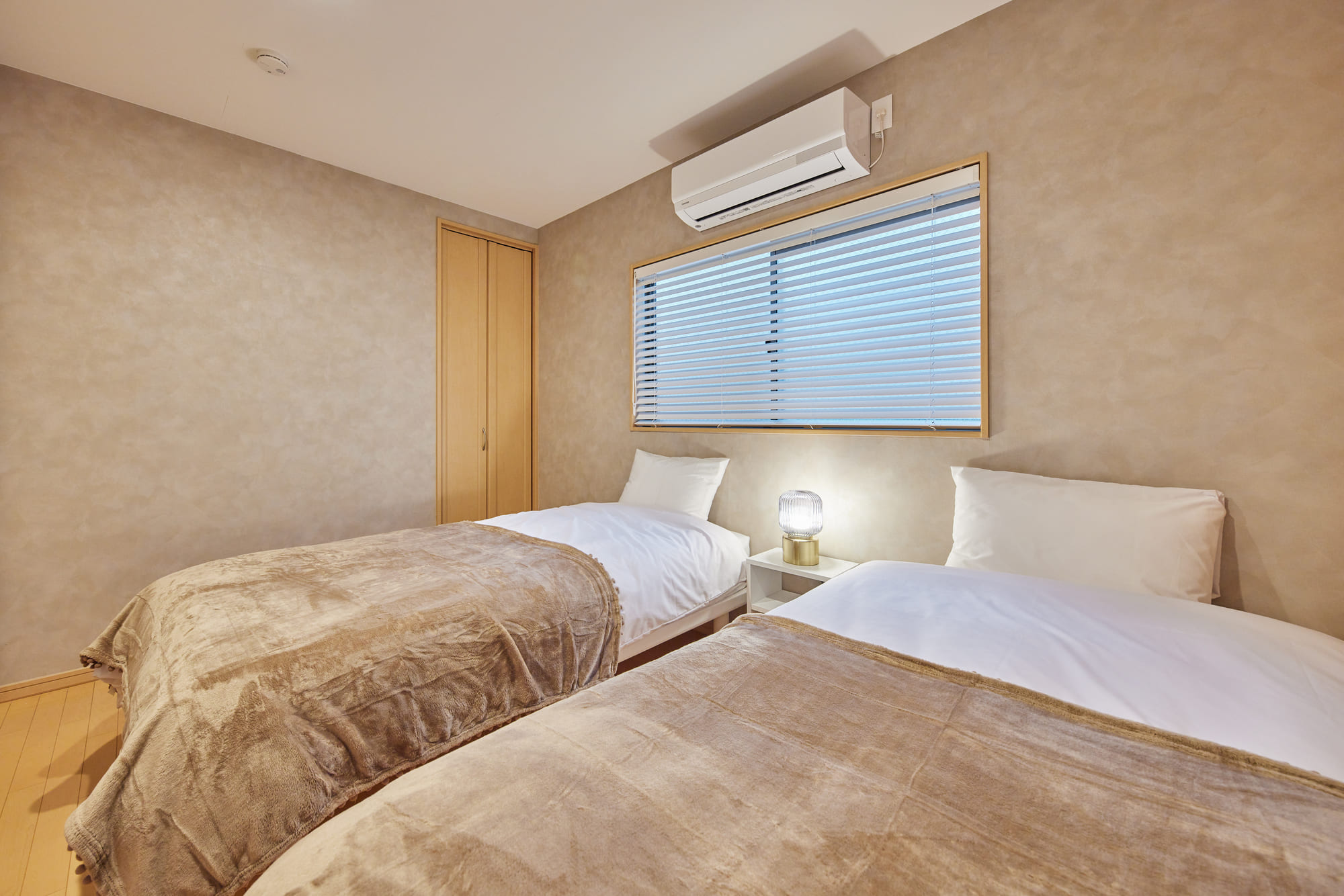 There are four bedrooms in total, allowing each guest to enjoy their own private time, even when staying with family or a group. The charming Japanese-style room is equipped with three single-size futons, making it a comfortable and safe option for families with small children. Additionally, the sofa in the living room converts into a double-size sofa bed, offering even more space for guests to relax and unwind in their own way.