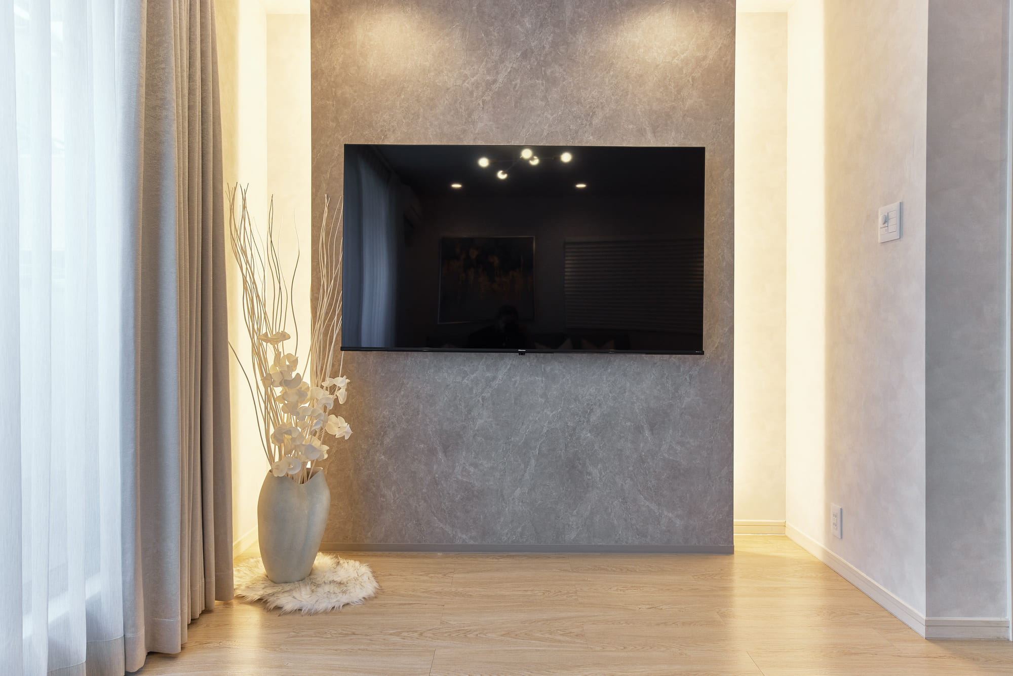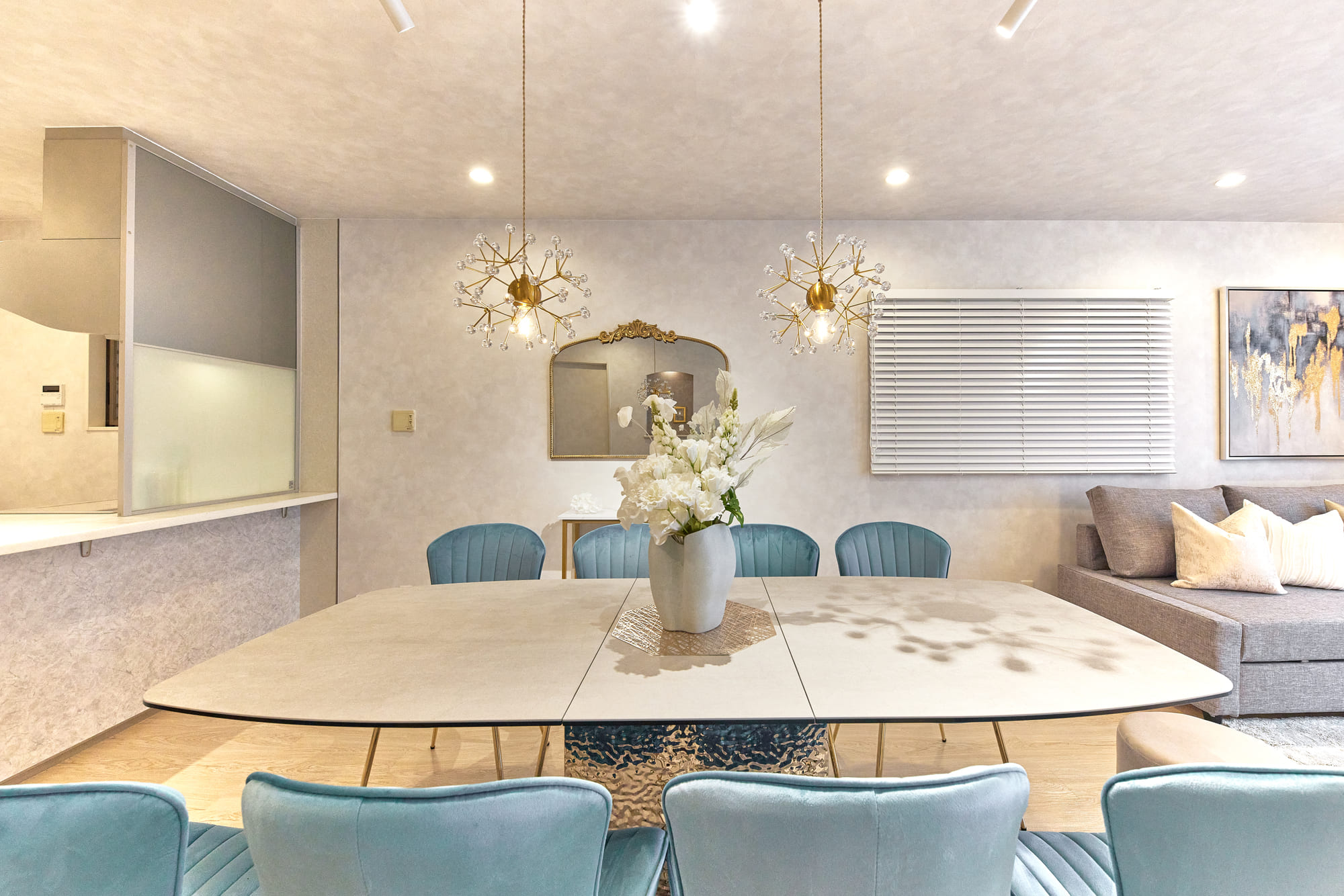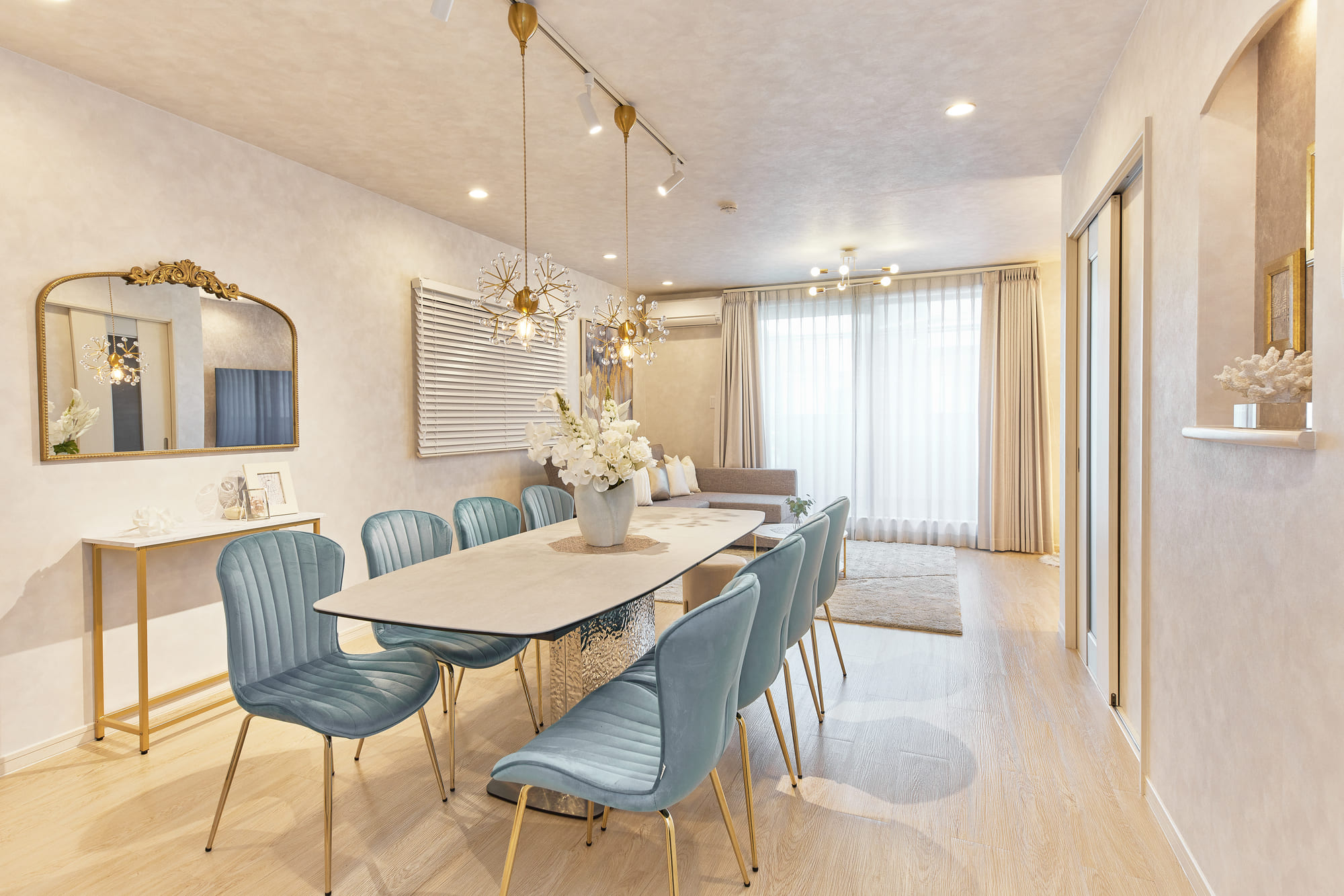 The spacious living room on the second floor offers a sense of openness, enhanced by modern and elegant interior design that creates a relaxed and comfortable atmosphere. Gentle natural light streams through large windows, softly illuminating the space and adding a warm, inviting touch. The room is generously sized, ensuring that even large groups can gather without feeling cramped—perfect for enjoying quality time with family and friends. Surrounded by a refined ambiance, guests can unwind and escape the hustle and bustle of daily life in this truly special space.