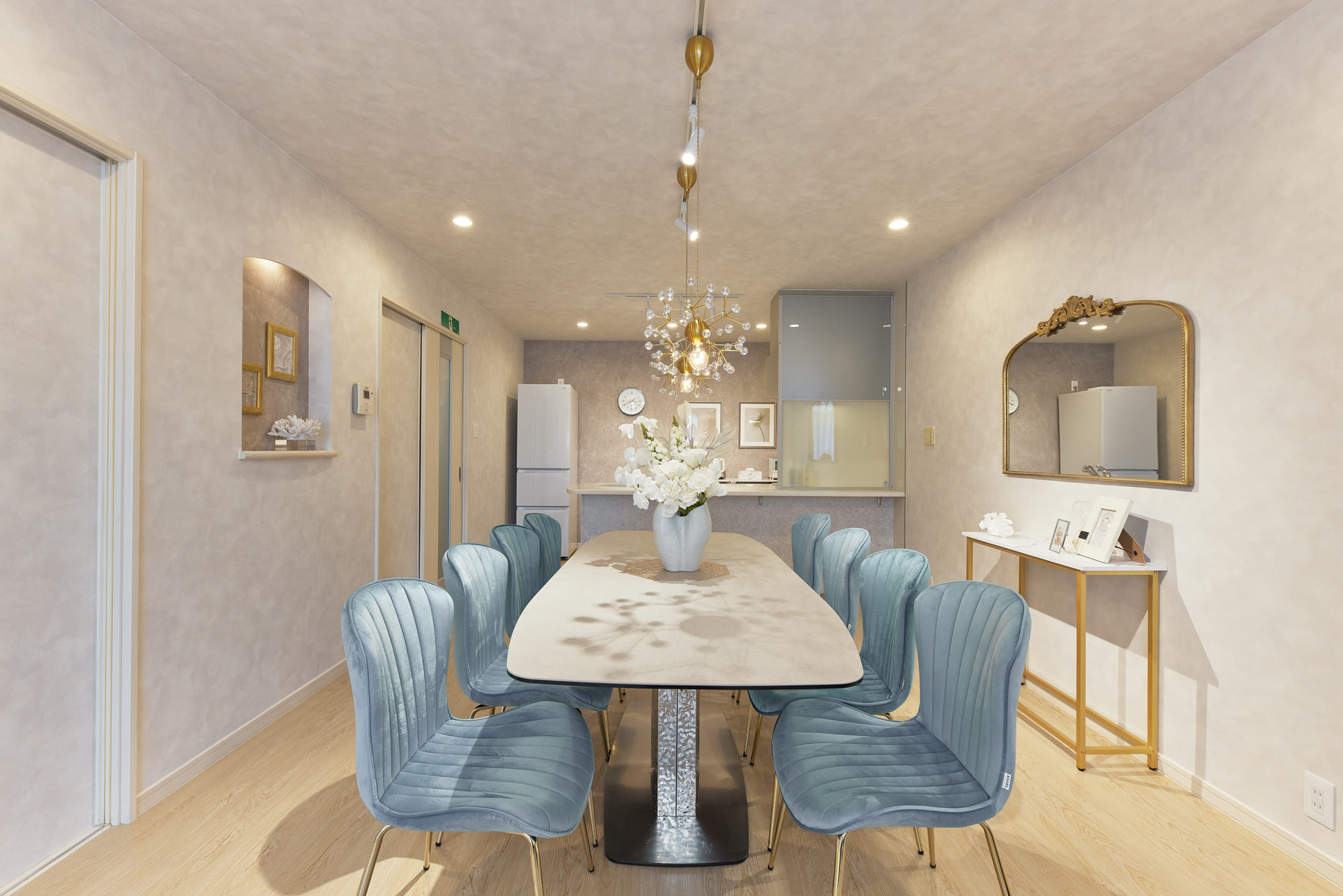 Located a 7-minute walk from JR Nara Station in Sanjyo-cho, an area filled with the atmosphere of the ancient capital, this is a 3-story private rental residence. It features a refined living-dining area and 5 private bedrooms, accommodating up to 12 guests.